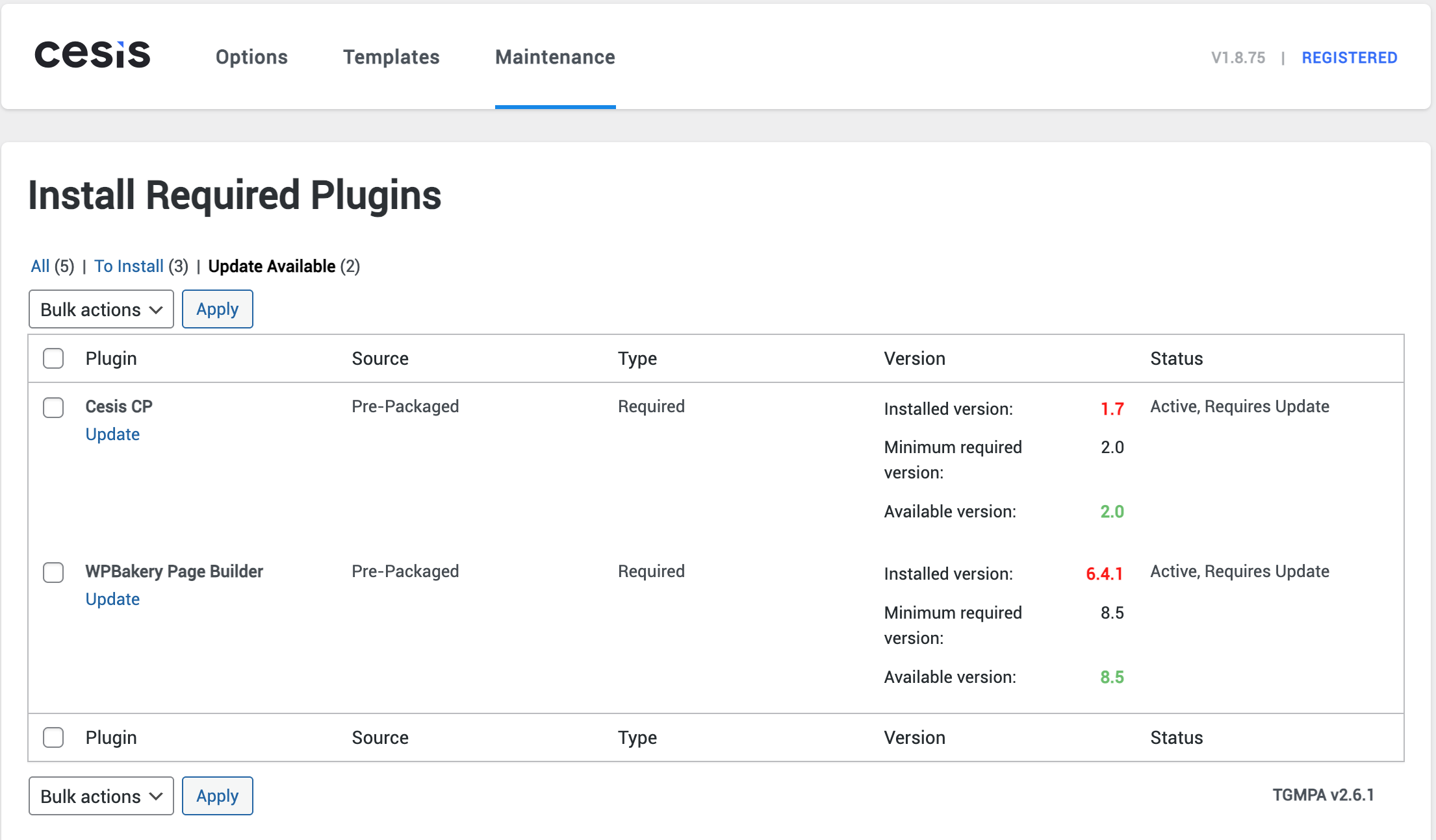 After updating the Cesis theme to v1.8.75, I noticed a compatibility issue between the theme’s bundled plugins and the latest WPBakery Page Builder update.